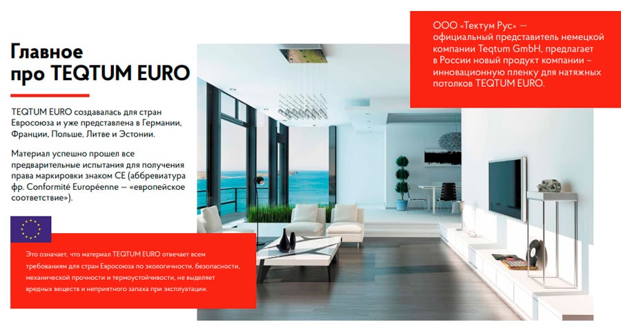 Натяжные потолки TEQTUM EURO в Долгопрудном рассчитайте стоимость с установкой онлайн