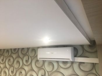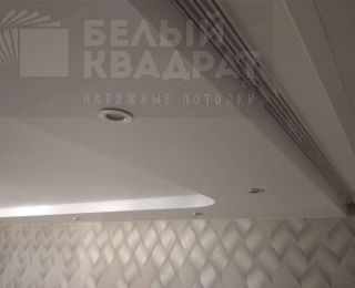 - Натяжным полотном закрывается оставшаяся часть потолка. Тоесть не требуются отделочные подготовительные работы. Иногда бывает, что в районе монтажа карниза проходят инженерные коммуникации, которые легко скрываются за готовой нишей.