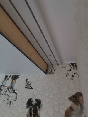 Рекомендуется перед заказом натяжного потолка с нишей для штор подготовить часть поверхности потолка, а именно полосу 30-40 см от окна на всю длину карниза, сделать её ровной и покрашенной, или оклеенной так как после монтажа натяжного потолка и установки карнизной планки, остаётся видимой часть основного потолка(см. фото).