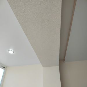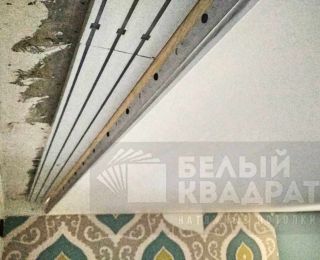 Стоит учитывать тот факт, что после установки карнизной планки для штор определённая часть существующего потолка останется видимой. Поэтому перед монтажом натяжного потолка нужно выполнить отделку части этого пространства, так сказать отшпаклевать и покрасить полоску шириной 40 см.