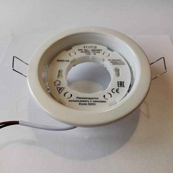 Патрон: GX53 Максимальная мощность лампы: Вт 20 Цвет: Белый матовый Тип: встраиваемый Размер: 38x106 мм Врезное отверстие: 90 мм Лампа: в комплект не входит Тип лампы: GX53 Цена: 149