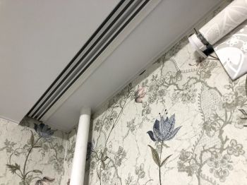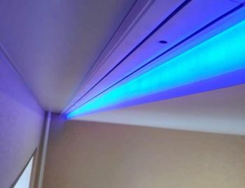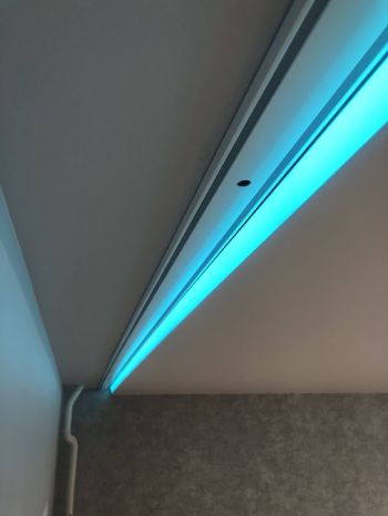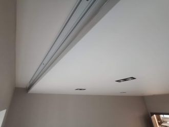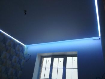 - Натяжным полотном закрывается оставшаяся часть потолка. Тоесть не требуются отделочные подготовительные работы. Иногда бывает, что в районе монтажа карниза проходят инженерные коммуникации, которые легко скрываются за готовой нишей.