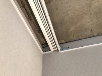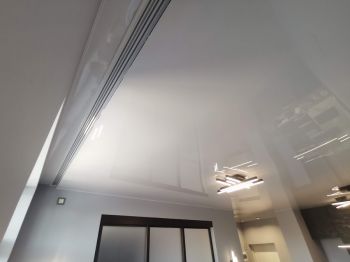 Стоит учитывать тот факт, что после установки карнизной планки для штор определённая часть существующего потолка останется видимой. Поэтому перед монтажом натяжного потолка нужно выполнить отделку части этого пространства, так сказать отшпаклевать и покрасить полоску шириной 40 см.