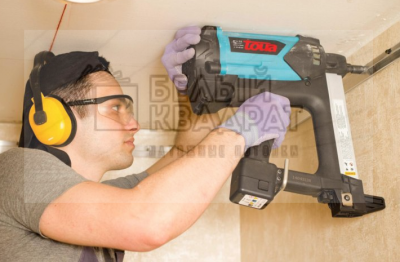 Пневмопистолет "неллер" позволяет производить крепление направляющих для натядного потолка без пыли и лишнего шума. Фиксация профиля происходит специальным гвоздём посредством выстрела. Происходит глухой хлопок и квоздь в стене. Никакой пыли и минимум шума!