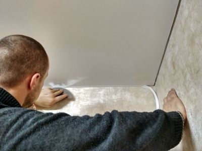 Можно натянуть потолок после поклейки обоев и сразу выполнить отделку примыкания потолка к стене вставкой - это тонкая маскировочная лента, которая...