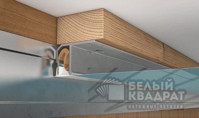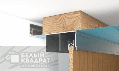 2. Натяжной потолок внутри шкафа купе так же можно выполнить. Для этого мы монтируем закладную деталь из деревянного бруса в месте установки дверей. этот вариант удобен, если сборка шкафа не планируется в ближайшее время.