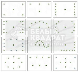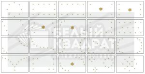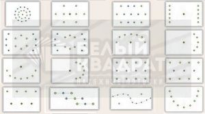 Как правило самая хорошая мысль рождается за 30 секунд, остальное притянуто за уши сомнениями и неуверенностью. Вы всегда можете подвинуть коробочку в одну, или другую сторону. И вот, когда фигура вам понравилась, возьмите рулетку, подравняйте коробочки относительно стен и между собой и перенесите схему на бумагу с привязкой каждого светильника к двум ближайшим стенам, образуя координаты Х , У.