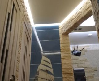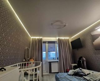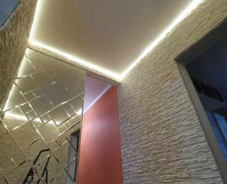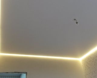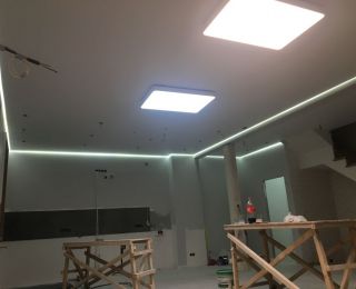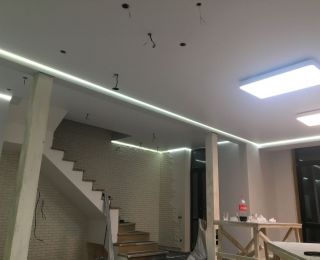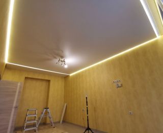 Парящими потолки называю потому, что они, визуально как бы "висят" в воздухе. Такой эффект достигается в результате сочетания специальных алюмтниевых профилей и подсветки из светодиодной ленты. Таким образом свет распространяется из-за потолка по стенам, поэтому перед монтажом парящих потолков необходимо подготовить стены, по качеству, как под покраску. Включёная подсветка покажет все неровности и изъяны стен и вся радость от хороших потолков разобьётся о кривые стены.