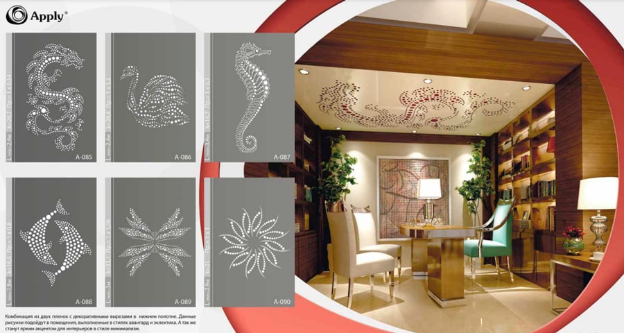 - пленка, применяемая для монтажа, позволяет воплотить любое дизайнерское решение благодаря свойствам материала;
